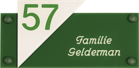Gravoglas is een luxe en tegelijk stevige kunststofsoort (3 mm dikte), met de uitstraling van gekleurd glas, welke uitstekend geschikt is voor gebruik in en rondom uw woning. De tekst wordt in alle gravoglas-naamborden gegraveerd, waardoor uw naam niet weg kan slijten of vervagen. Het bijzondere aan gravoglas is dat het aan de achterzijde ingegraveerd wordt, dit in tegenstelling tot andere kunststofsoorten. Hierdoor blijft het materiaal aan de voorzijde glad en krijgt het een hele luxe uitstraling. Tot slot: de gravoglas-naamborden zijn standaard voorzien van schroefgaten (tenzij anders vermeld) en worden geleverd met afstandbusjes en afdekdopjes waardoor u het naambord eenvoudig op een korte afstand van de muur kunt monteren. Gravoglas een zeer luxe kunststofsoort dat tegen een stootje kan!