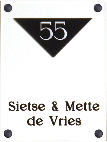 Gravoglas is een luxe en tegelijk stevige kunststofsoort (3 mm dikte), met de uitstraling van gekleurd glas, welke uitstekend geschikt is voor gebruik in en rondom uw woning. De tekst wordt in alle gravoglas-naamborden gegraveerd, waardoor uw naam niet weg kan slijten of vervagen. Het bijzondere aan gravoglas is dat het aan de achterzijde ingegraveerd wordt, dit in tegenstelling tot andere kunststofsoorten. Hierdoor blijft het materiaal aan de voorzijde glad en krijgt het een hele luxe uitstraling. Tot slot: de gravoglas-naamborden zijn standaard voorzien van schroefgaten (tenzij anders vermeld) en worden geleverd met afstandbusjes en afdekdopjes waardoor u het naambord eenvoudig op een korte afstand van de muur kunt monteren. Gravoglas een zeer luxe kunststofsoort dat tegen een stootje kan!