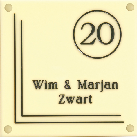 Perspex is een stevige kunststofsoort (3 mm dikte), welke uitstekend geschikt is voor gebruik in en rondom uw woning. De tekst wordt in alle perspex-naamborden gegraveerd, waardoor uw naam niet weg kan slijten of vervagen. De transparante perspex naamborden worden aan de achterzijde ingegraveerd (waardoor de voorkant glad blijft) en de gekleurde perspex naamborden worden aan de voorzijde ingegraveerd. Tot slot: de perspex-naamborden zijn standaard voorzien van schroefgaten (tenzij anders vermeld) en worden geleverd met afstandbusjes en afdekdopjes waardoor u het naambord eenvoudig op een korte afstand van de muur kunt monteren. Perspex een luxe kunststofsoort dat tegen een stootje kan!